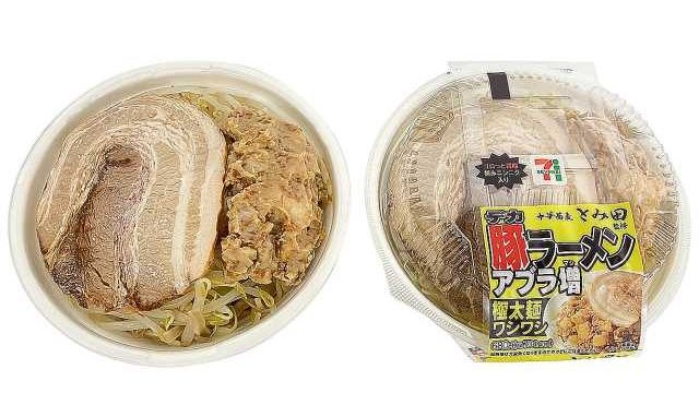 セブンイレブンの二郎系と言われているね。ワシワシ感のあるうどんくらい太い麺と、背脂にんにくのイカつい味が背徳感の極みへ誘ってくれるよ。でも、僕はもう少しカロリーを摂りたくて、豚ラーメンを食べるときは、レジ横ホットスナックの唐揚げを買ったりしてしまうんだよね。