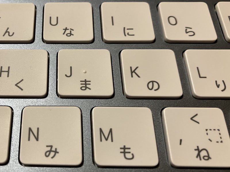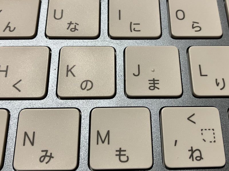 ちなみに、どうしてJIS配列のキーボードなのかと言うと、壊しそうで怖かったから、とりあえずiMac用に持っていたMagic Keyboardの方で試したからだよ。ちゃんと上手くいったから、ノートパソコンでも試したんだけど…想像以上に汚かったから、あんまり見ないで。