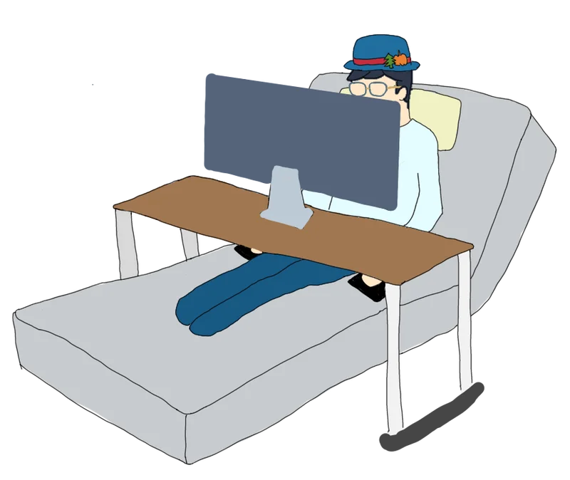 そのまま即座に仮眠をとることもできるし、起きた瞬間にパソコンを開くこともできるっていうメリットもある。体勢だって椅子に座っているよりは、十倍くらい楽になったんだ。僕は何かの目的を達成するにあたり、無駄がなければないほど幸せに感じるっていう性質があるんだろうね。