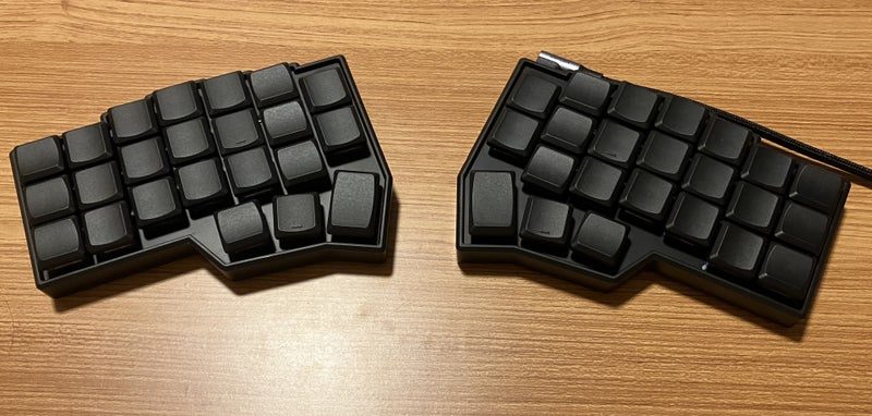 手は2個あるのに、キーボードは1枚しか使わないなんておかしいんだよ。別に分離型であれば、自作キーボードでなくても良かったんだけど、左右分割型キーボードって、ほとんど自作キーボードしかないんだよね…。だから、簡単に組み立てられて、できるだけ手を動かしたくないというニーズに応えられるような小さなキーボードはないかと調べると、ぴったりのものを見つけたんだ!