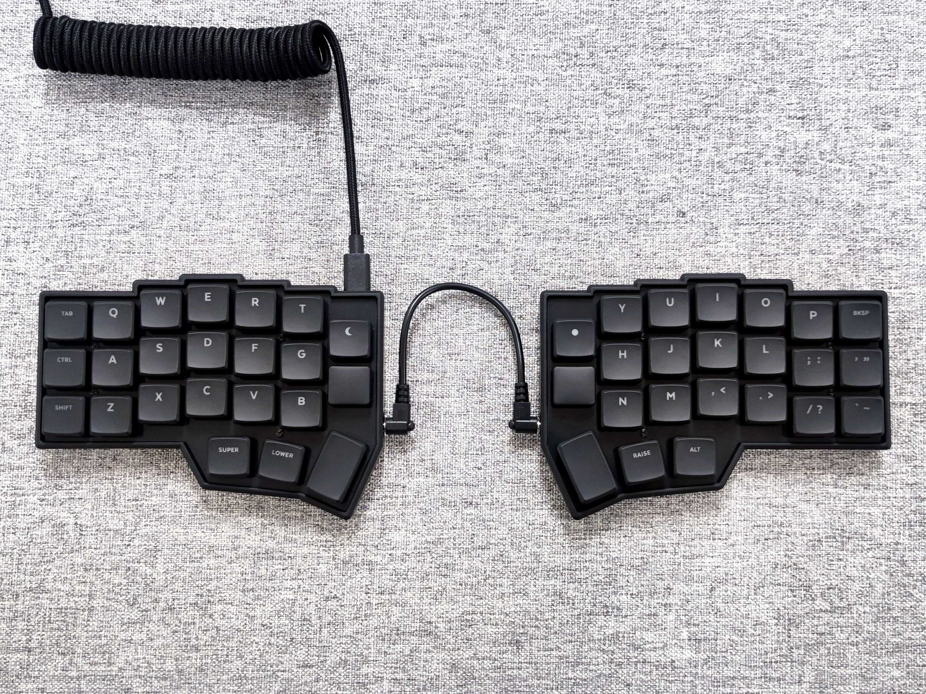 それが、カラムスタッガードという配列のキーボードなんだ。かつ、左右分離型であって、不必要なキーを極限まで減らした王道のキーボードがこちら。